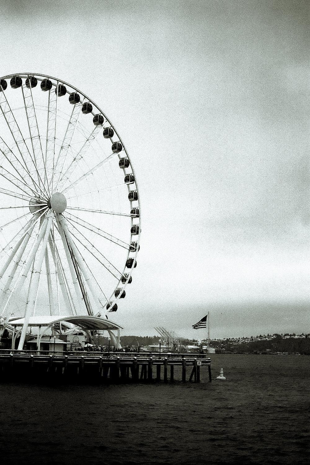 The photo was taken on Ilford B&W film with a Canon Ae-1 35mm camera. The photo was taken in Seattle, WA on the shores by Pier 66.